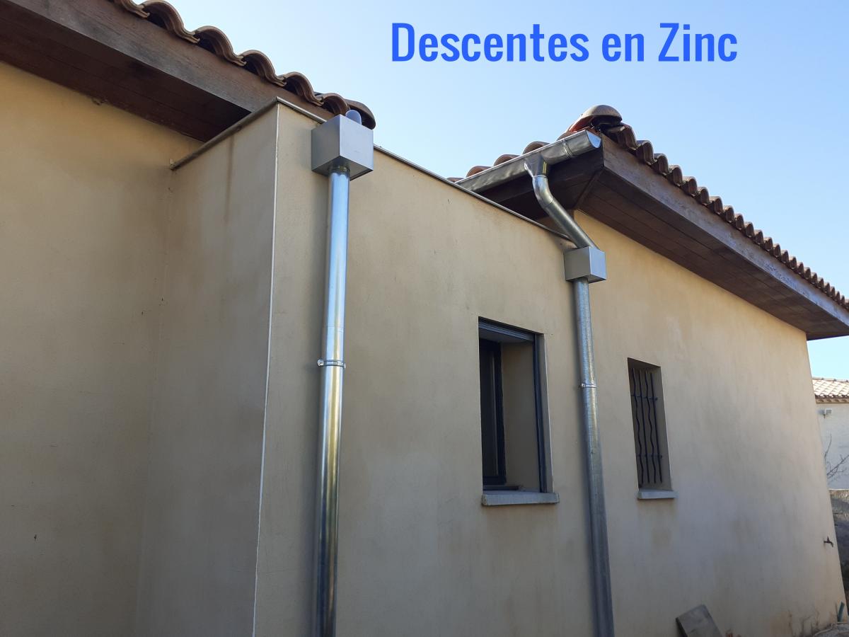 Gouttières d'eaux pluviales, tuyaux de descente en Znc ou Pvc etc....